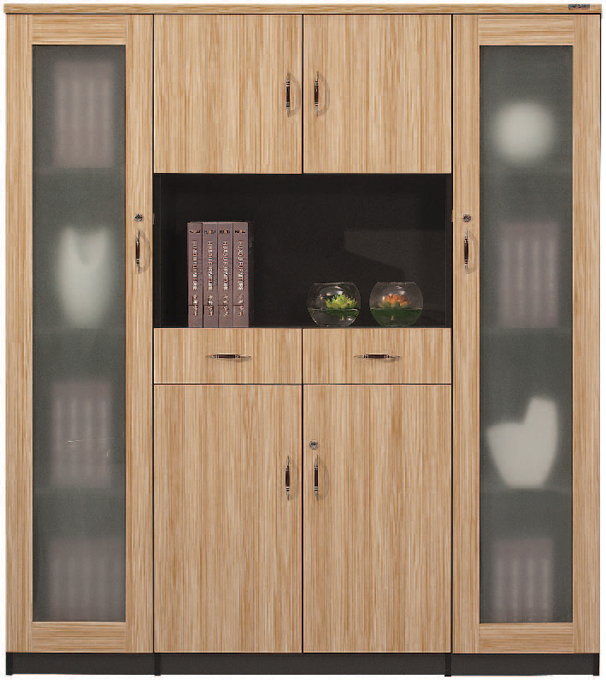 1、文件柜為拉門式,表面光澤完美,拉動(dòng)順易。木框磨沙玻璃門設(shè)計(jì),與眾不同。