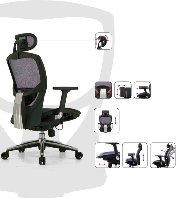 椅體:高背網(wǎng)布設(shè)計。