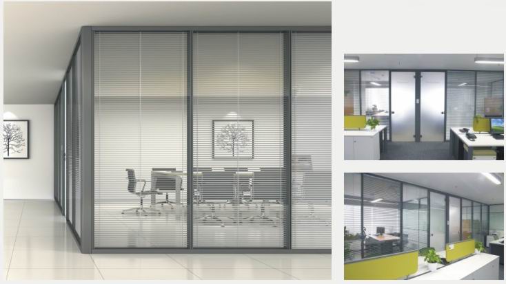 透明雙玻內(nèi)置百葉簾式的高隔間墻是現(xiàn)在辦公場所運(yùn)用最多,最時(shí)尚的一種裝潢設(shè)計(jì)。